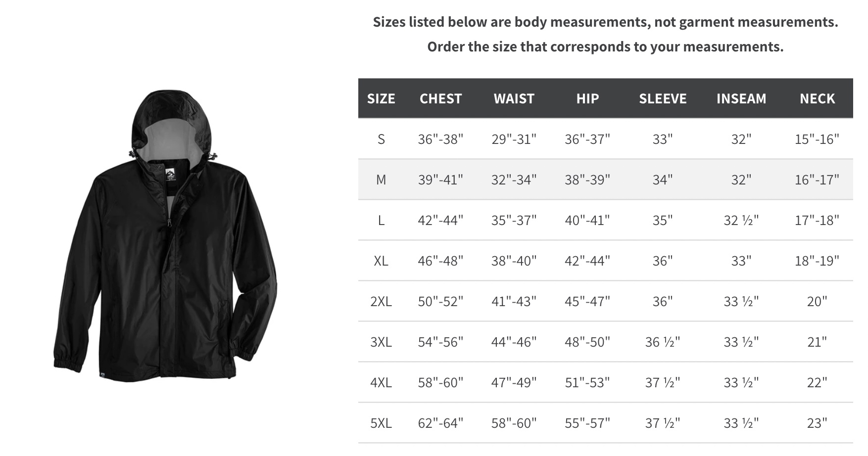 - Three piece hood with drawcord rolls into collar